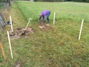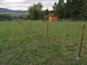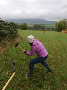 Da wir ca. alle 2,5 m einen Pfosten wollten, bedeutete dies ca. 56 mal diese Tätigkeit: