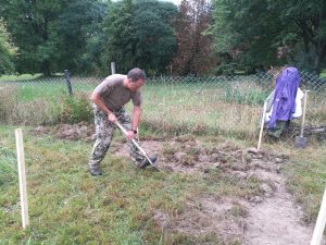 Hier soll als nächstes ein Schuppen entstehen, dazu muss erst einmal die Grasnabe weg. Wer es nicht weiß, dies ist eine sehr schweißtreibende Arbeit.